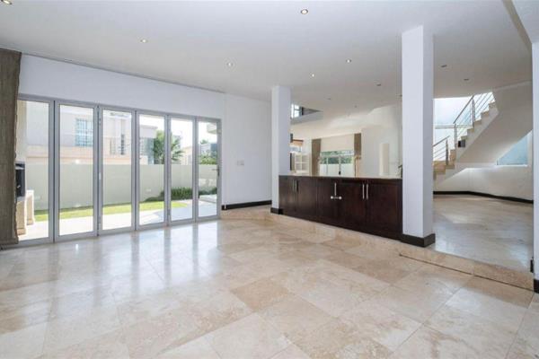 Step into the grand, double-volume entrance where elegance meets comfort. The spacious, open-plan living areas with a downstairs provide ample room for entertainment and relaxation and a fireplace. Stacking doors open onto a large entertainers patio with a built-in braai, and spacious garden. Open-plan kitchen with Caesarstone tops and a separate scullery.