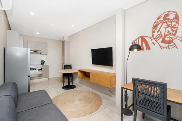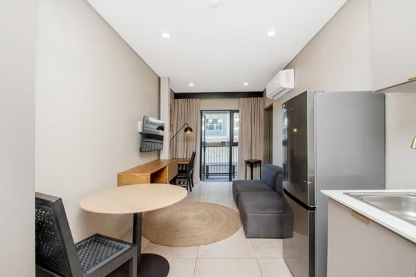 Designed for short- or long-term rental flexibility, the unit comes fully fitted with contemporary finishes, open-plan living, and a compact, functional kitchen. The bedroom is spacious and private, with ample cupboard space and modern fittings throughout.