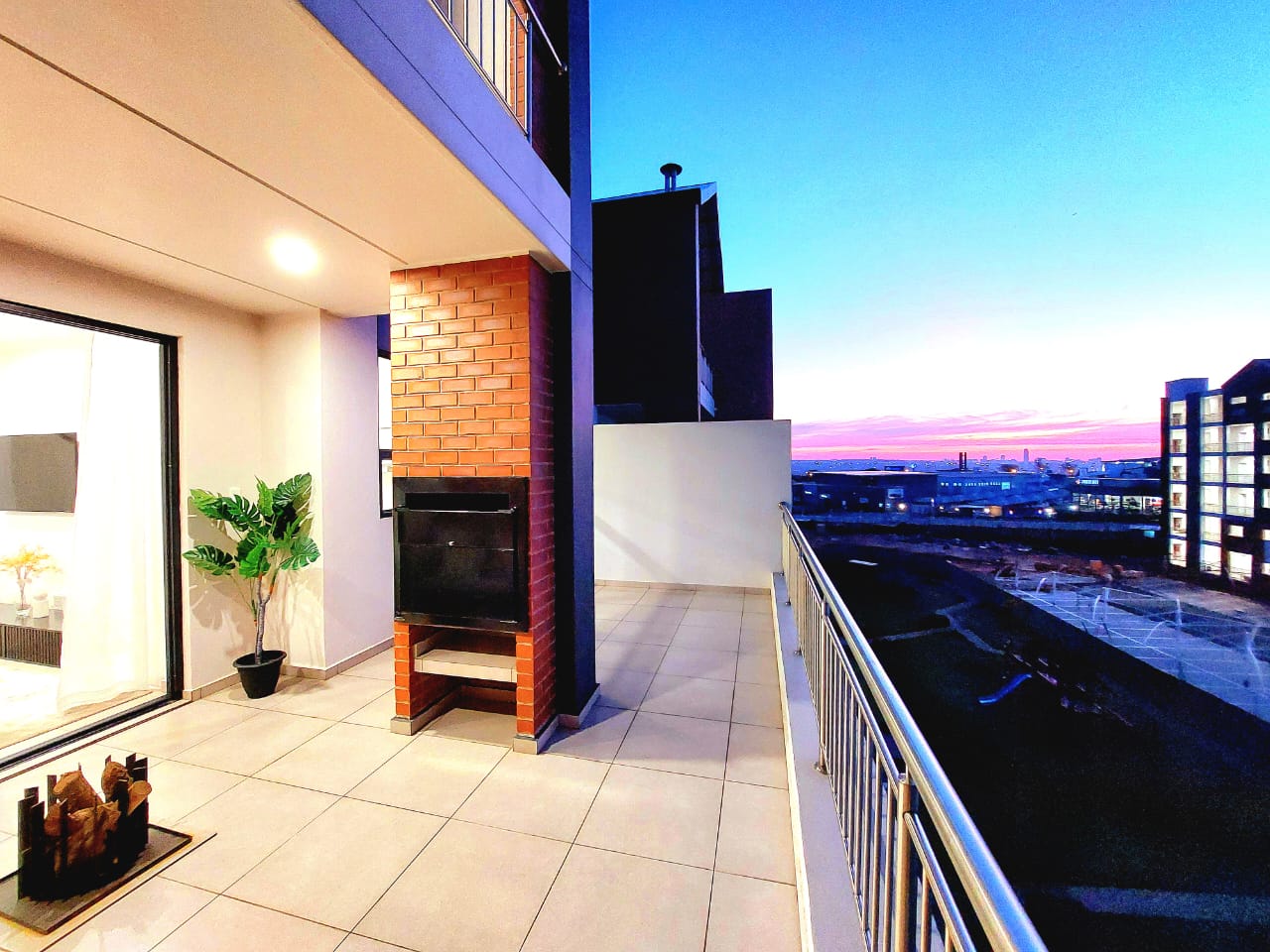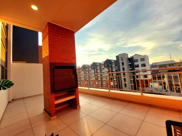 Large private balcony with built-in braai stand and fireplace perfect for entertaining