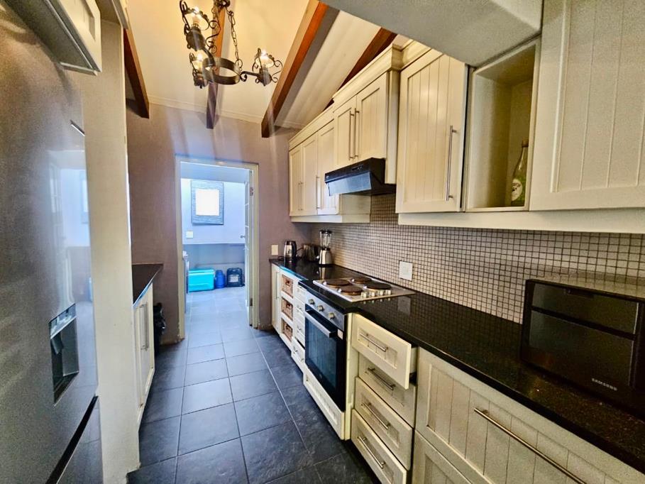Downstairs, a galley-style kitchen with a separate scullery connects seamlessly to the open-plan lounge, dining, and TV areas. These spaces spill out onto a covered patio, sunlit deck, and sparkling swimming poola true entertainers paradise. A petite private garden wraps the home in greenery, offering a peaceful nook for morning coffee or quiet evenings. Your Sanctuary Awaits in River Club, Sandton