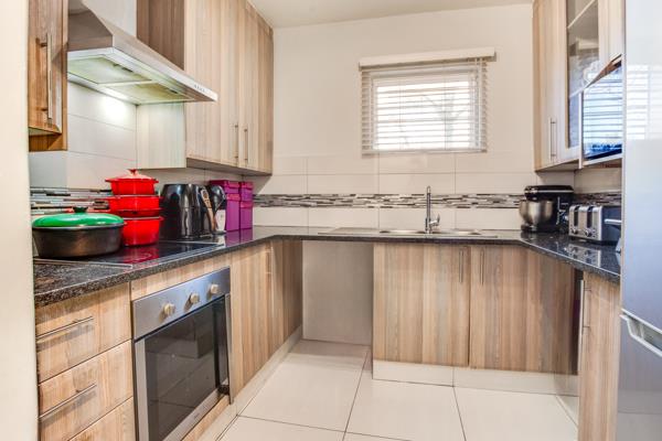 When you walk in, you will be impressed by the beautiful large high gloss tiles and the spacious open plan lounge and dining room with built-in server and cabinetry. The balcony provides the perfect place to enjoy sundowners or just relax and unwind.