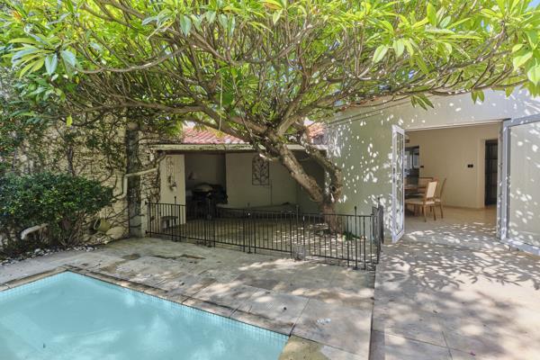 Privately accessed, the garden cottage or staff quarters, offers flexibility as a guest suite or a great rental opportunity. It includes an open plan lounge/dining area with kitchen, one bedroom with built-in cupboards, and a bathroom fitted with a shower.