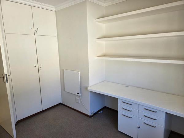 The 3 bedrooms are spacious and have built in cupboards with the main being en-suite with a shower. The third bedroom has a built in in wall unit ideal for all those books or a students study area.