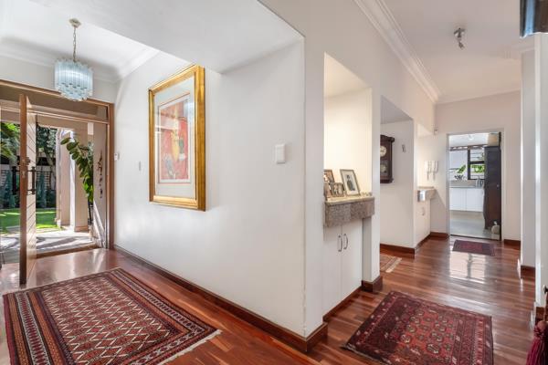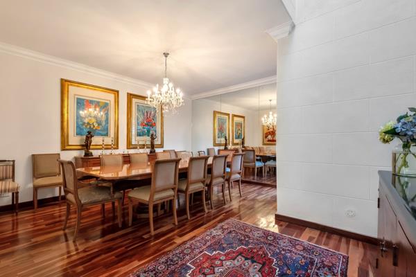 At the heart of the home, a chefs kitchen of exceptional scale features a premium gas hob, abundant storage, travertine floors with granite tops that complement one another and a generous scullery ensuring no limited to your required appliances. The living and dining areas open effortlessly to an enormous, covered patio, perfectly proportioned to host both a large dining suite and a separate lounge area. Here, views over the heated swimming pool and manicured, established gardens create an atmosphere of year-round leisure.
