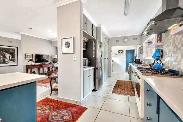 The kitchen, Caesarstone countertops, a scullery, and a beautiful new SMEG gas and electric stove ready for everything from weekday breakfasts to weekend feasts. The scullery ensures your kitchen remains neat during entertaining. The courtyard behind the kitchen keeps washing away from guests.