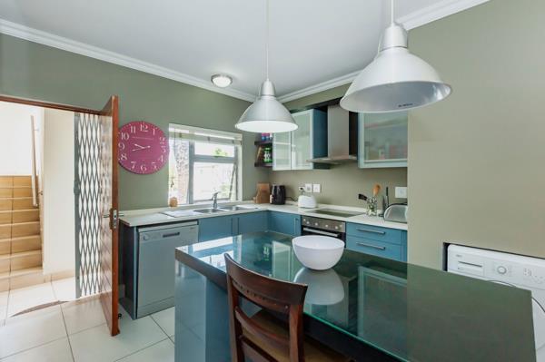 Open-Plan Living The lounge and dining flow effortlessly onto a well-sized patio, ideal for an outdoor dining set and braai facilities with serene views of the gardens and tennis courts.