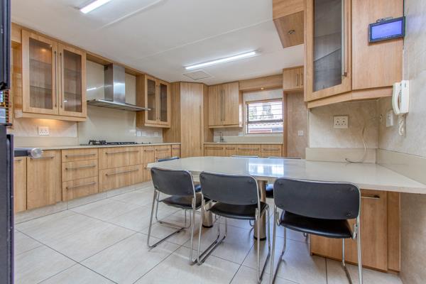 The gourmet kitchen is a chefs delight, featuring granite countertops, double electric ovens, a gas hob, a large fridge space, and a full scullery with room for three appliances. A guest cloakroom conveniently completes the living space.