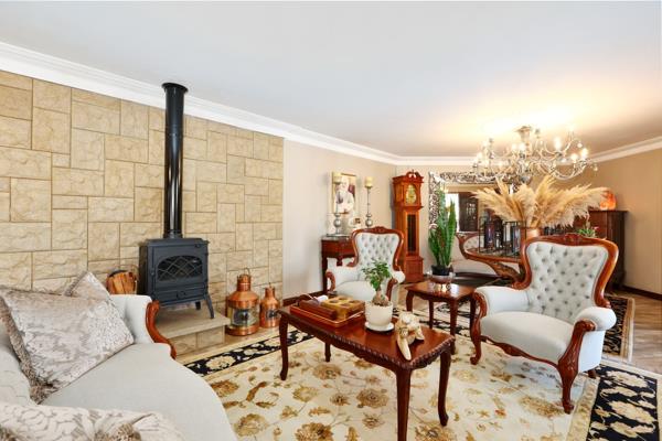 When standing in the garden one gets to enjoy the breathtaking view of a beautifully curated pool and entertainment area. Stone paving lines the boundaries of the pool with synthetic grass lined in between it to give you that extra level of sophistication. The pool area has a waterfall feature and additional water works to add to the decor, while you have a terrace that overlooks the pool which makes for a perfect space for seating plans and outdoor entertaining. The driveway is immaculately paved and the property is on a pan handle with 2 security gates to access, making for an incredible level of safety being enjoyed in the property.