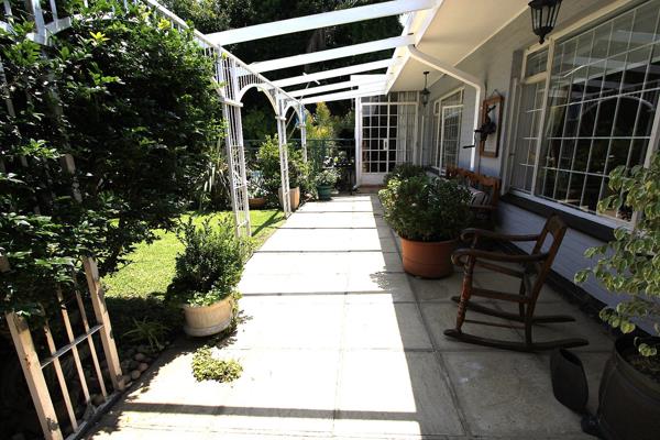 Welcoming entrance leads to open plan dining room/family and lounge with sliding doors that opens magnificent garden and pool. Well fitted eat in functional kitchen with lots of cupboards, space for double fridge/freezer, dishwasher and separate laundry/scullery. Boosting 4 generous sized bedrooms with lots of natural light plus a separate study/office. Main bedroom is very spacious with dressing room and opens to the back garden. 2 Full bathrooms (mes). At the back of the house is a large pretty garden which is ideal for kids to play and pets. Established vegetable patch.