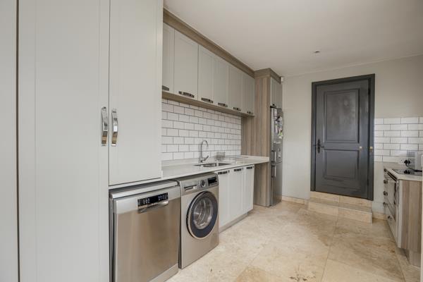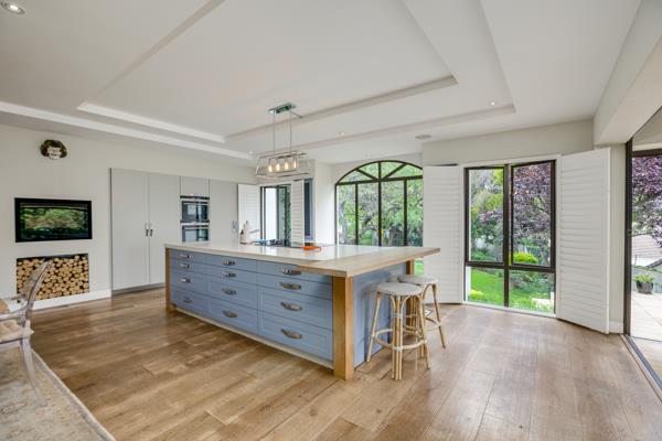 The sophisticated dining space flows into a state-of-the-art gourmet kitchen fitted with an array of integrated luxury appliances, including a steam oven, double convection ovens, induction hob, retractable extractor, integrated fridgefreezer, and dual bar fridges. Soft-touch cabinetry, a walk-in pantry, an expansive scullery and laundry with a second undercounter oven, and a cosy breakfast nook complete this culinary haven. For wine enthusiasts, a climate-controlled wine cellar and tasting room offer an indulgent sanctuary for storing and savouring prized vintages.