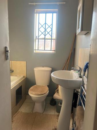 Beautifully tiled property with 3 Bedrooms, 1 bathroom with a bath-tub, wash-basin and a toilet.