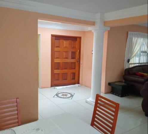 Discover this spacious two-story family home situated in the vibrant metropolitan suburb of Diepkloof, Soweto. Boasting an erf size of 561 sqm this property offers ample space for comfortable living and entertaining. The exterior features a distinctive white facade with eye-catching orange accents complemented by a large paved driveway providing generous additional parking alongside the single garage.