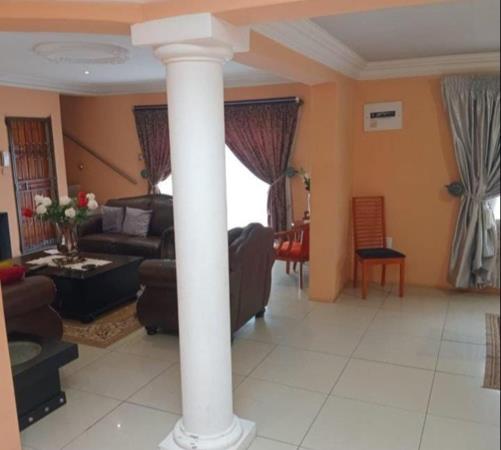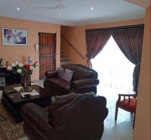 Inside the residence presents a functional layout designed for modern family life. The home includes two inviting lounges offering versatile spaces for relaxation and social gatherings enhanced by an open-plan design that promotes seamless flow. The kitchen is equipped with white cabinetry, an integrated oven and hob and a range hood set against a bright accent wall. A dedicated utility room with a washing machine and sink adds to the home''s practicality. Accommodation comprises three well-proportioned bedrooms and two bathrooms ensuring comfort and privacy for all residents. The bedrooms feature a mix of wooden and laminate flooring providing a warm and inviting atmosphere. Security is well-addressed with burglar bars and security gates, offering peace of mind.