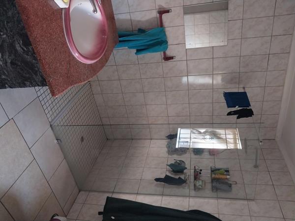This is a house. It has4 bedrooms , two bathrooms , one garage, 2 covered parkings. It also has built in cupboard, 1 dining area , a garden 1 kitchen and It is paved aswell.