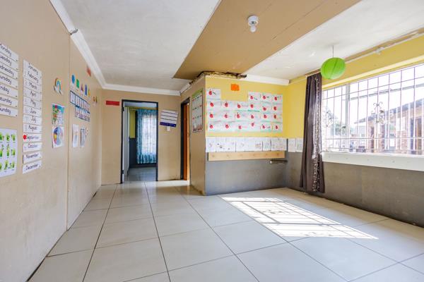 Looking for Crèche premises - Look no further.. Currently a Creche'' - An opportunity to persue your own Dream. This property Nestled in the heart of Eldorado Park has been converted to a Day Care Centre. With 2 kitchens, 7/8 classrooms, kiddies toilet plus swimming pool.