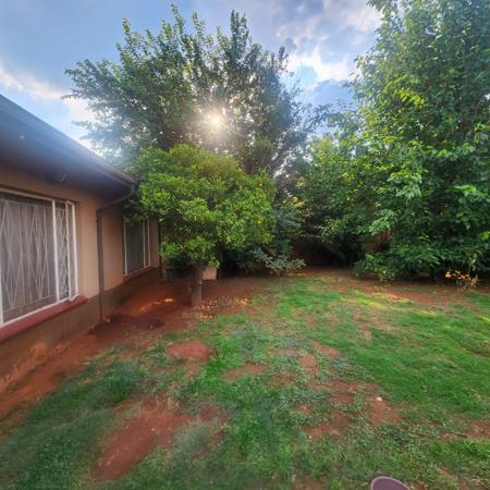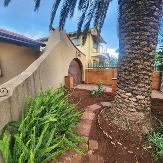 Outdoor living is a highlight, with an expansive 1000 sqm erf featuring a well-maintained garden with established trees, including a fruiting citrus tree, and extensive paving throughout. This pet-friendly environment is perfect for outdoor activities. A private, tiled patio area offers a sunny spot for relaxation. The property includes a double garage, providing secure parking and additional storage.