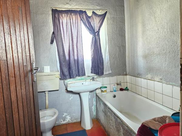 Be prepared to be swept away by this massive stand in Naledi , the property is a two bedroom house with one bathroom , situated on a huge stand with three outside rooms that are also generating an extra income . This property is not far from Naledi station and a nearby primary school and a public transport . The kitchen is not fitted with cupboards and the bedroom , also the floors are not tiled . This is the investors dream .