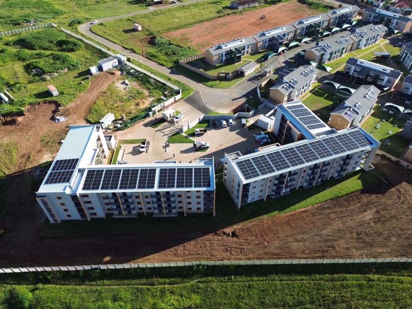 Discover contemporary living in this modern 2-bedroom apartment located in the vibrant Protea Glen suburb of Soweto, South Africa. This well-maintained complex, featuring a striking grey and orange architectural design, immediately impresses with its clean lines and inviting aesthetic. Residents benefit from a secure, gated entrance and ample paved parking. A standout feature is the advertised ''NO LOAD SHEDDING!'' promise, powered by extensive solar panels and a battery inverter, offering uninterrupted power supply.