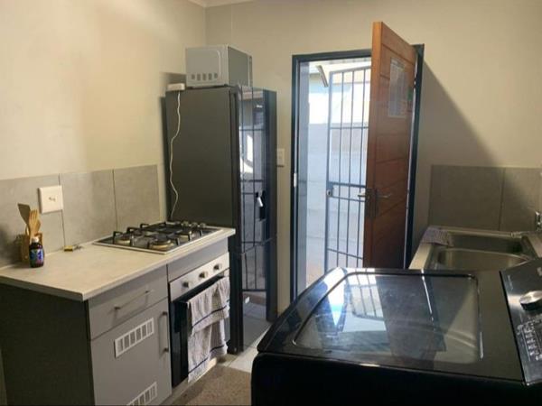 Step into this perfectly situated home in a secure and convenient location. The property features built-in cupboards in the bedrooms, a modern kitchen with a double sink, 3-door built-in cupboard, electric oven, and gas hob. Additional features include a BIC washing machine point, solar geyser, and burglar bars for added security. The property''s exterior is stylish and secure, with aluminium windows, awnings, and security gates. A carport and paved driveway provide convenient parking, while the beautifully landscaped garden and grass outside add a touch of serenity.