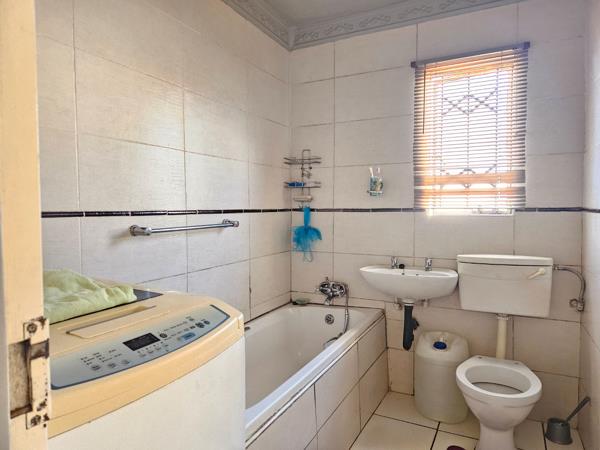 This three bedroom house is located in Glenridge , it is clean and well maintained . When you step in the yard , you are welcomed by the paved yard outside and when you enter the front door which leads you to the kitchen which is fitted with built in cupboards and stove , open plan lounge , with gamazine on the wall and ceiling , fully tiled and master bedroom has built in cupboards and en-suite with bathtub , shower and toilet and that main bedroom is a sanctuary after a long day at work . It also consists of an outside guests toilet and a one car garage . This property is not far from Glenridge shopping centre and a primary school and high school .