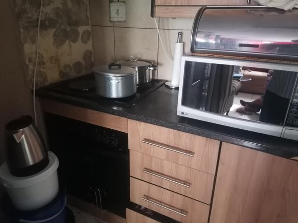 The main house comprises of three tilled bedrooms with bult- in wardrobes, fitted kitchen with a stove and oven, dining area, combined bathroom, basin and toilet. The yard is paved, walled with a gate.