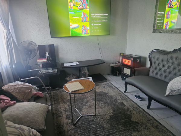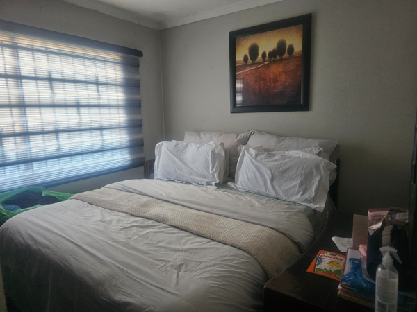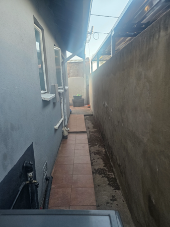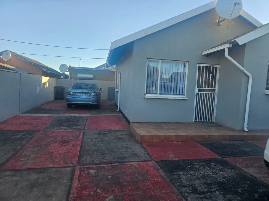 This secure residential property in Protea Glen, Soweto, features a well-maintained exterior with high boundary walls and a robust metal access gate. The grey-painted house includes a tiled front entrance and a fully paved driveway offering ample off-street parking for up to five vehicles.