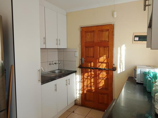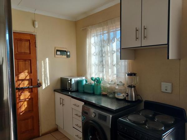 This stunning home consists of three bedrooms, two bathrooms, a lounge, and a fitted kitchen. It is walled and has burglar bars.