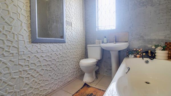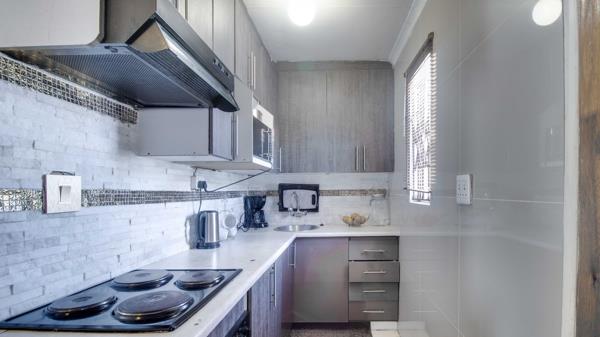 Discover this unique opportunity to own a versatile property featuring two homes within a private, secure yard. The main house offers 3 bedrooms, a comfortable lounge, and a full bathroom with a relaxing bathtub. The modern kitchen is equipped with built-in cupboards, a stove, oven, and hob, making meal preparation a breeze.