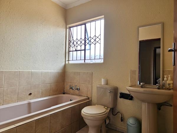 Externally, the property is totally walled for privacy and security, featuring an access gate and burglar bars on windows. A paved courtyard provides outdoor space, complemented by awnings over doorways and newly installed gutters. With two garages, this home caters to parking needs. Pets are allowed, making it suitable for animal lovers. This Protea Glen residence presents a solid opportunity for homeowners seeking a practical and adaptable living space in a vibrant community.