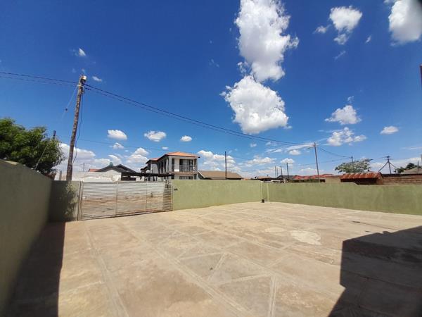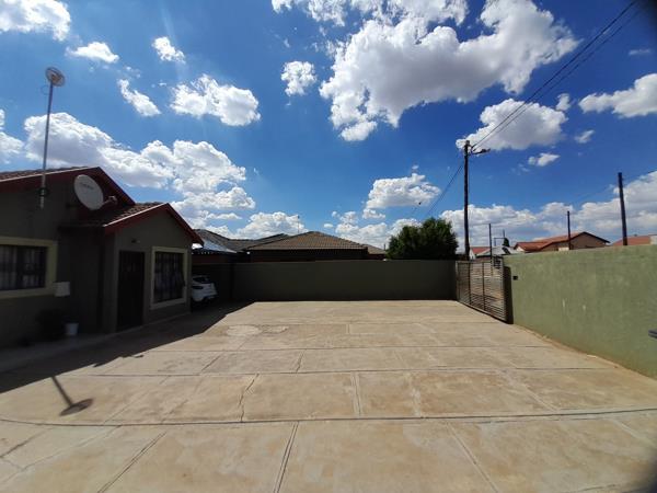 The expansive 338 sqm erf is convenient for future extension or to build rooms for extra income, predominantly paved, ensuring minimal upkeep and maximum utility for outdoor living. It features a double carport area, as depicted in the images,. Security is well-addressed with security bars on windows, a secure access gate, and robust perimeter walls. The property is fibre-ready, ensuring high-speed internet connectivity, and includes a satellite dish for entertainment.Prepaid electrcity and water and walking distance to Basa school and close to Protea Glen Mall