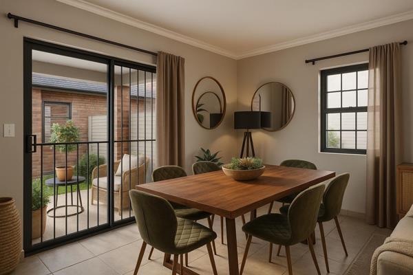 Open plan kitchen and lounge area that opens up to a gorgeous patio and manicured garden