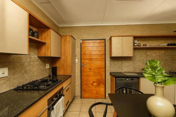 - Enjoy the spacious dining area, perfect for hosting elegant gatherings, while the fully-equipped kitchen offers a gas stove, built-in cupboards, and ample space for storage.