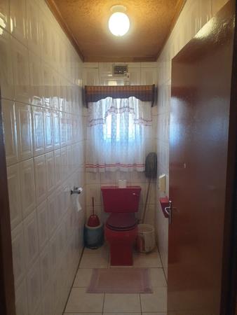 The three well-proportioned bedrooms offer private retreats. The single bathroom is fully tiled and includes a bathtub and basin, complemented by a separate toilet room, both featuring unique, older-style fixtures. Additional conveniences include a single garage and practical outside toilets, catering to various household needs.
