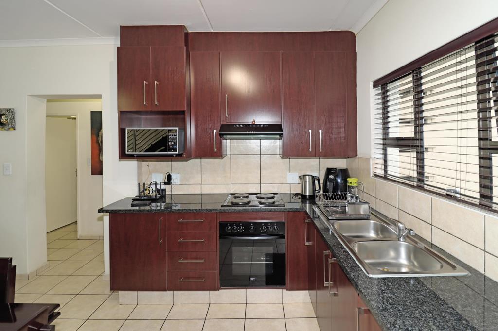 A massive 3 bed 2 bath apartment on the top floor with the most amazing views. An open plan lounge, dining room that leads out to an enclosed balcony. Fully tiled in the reception rooms. Granite tops in the kitchen with space for all appliances. Both bedrooms downstairs have laminate flooring with extra cupboard space. Both bedrooms downstairs share a full bathroom with shower and bathtub. Main bedroom upstairs also with laminate flooring and its own en-suite. Opens out into an enormous balcony with amazing views of the Waterfall skyline. Close to Mall of Africa, Polofields shopping centres. Complex has a generator that covers you during load shedding. 24 hr security at the gate. Clubhouse and pool in the complex.