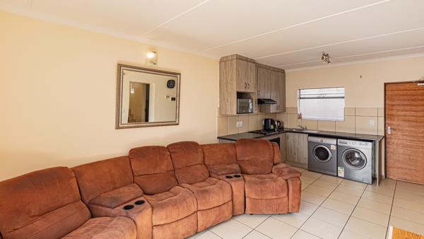 This modern and spacious 2-bedroom, 2-bathroom duplex apartment offers stylish urban living at The Edge in the heart of Midrand.