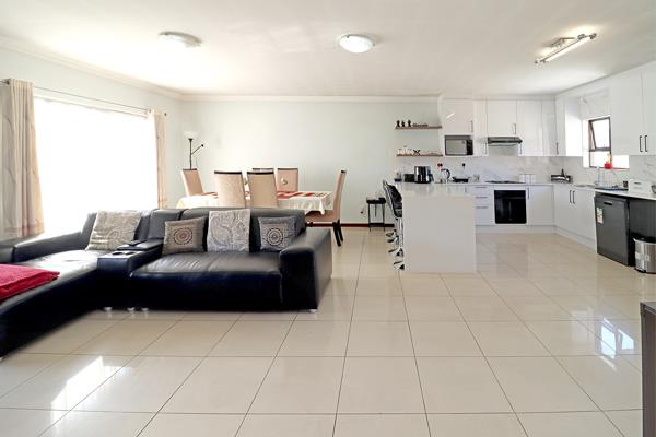 The living area is spacious and flows effortlessly onto an expansive balconyideal for entertaining friends with a Sunday Braai, sipping your morning coffee, or just enjoying the fresh air and open views.