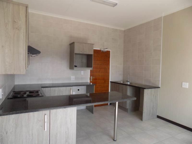 Beautifully finished top-floor apartment to rent in Grange Park, Barbeque Downs. This property opens into an open-plan living room and kitchen area. The kitchen has smart granite counter-tops, and a breakfast bar, eliminating the need for a dining-room table. There is provision for one under-the-counter appliance, and either a single or double-door fridge.