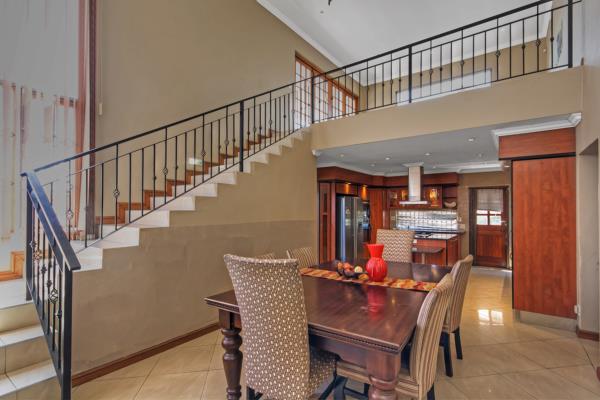 The generous open-plan living and dining area, large kitchen, and double garage all just waiting for a modern touch. Upper level has panoramic views of Waterfall and Kyalami a versatile space for entertaining or conversion to another bedroom.