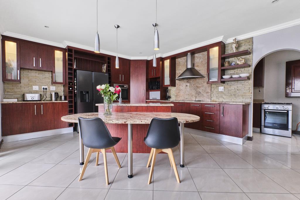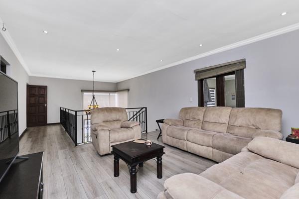 The heart of the home is a bright, open-plan lounge and dining area, bathed in natural light and ideal for hosting gatherings or enjoying relaxed family time. The modern kitchen is both stylish and functional, featuring a built-in pantry and a separate scullery that keeps the space neat and organized while catering to busy lifestyles.