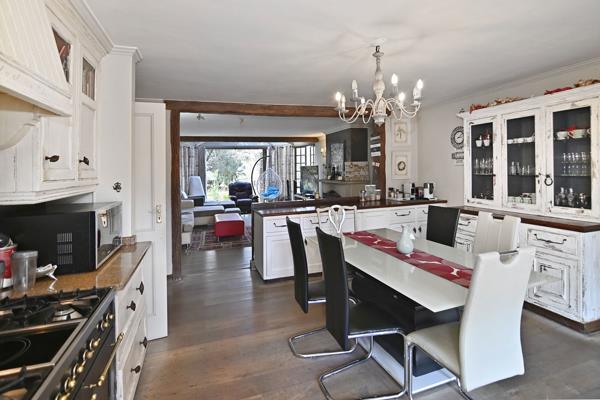 Nestled in a serene, tucked-away location, this charming country-style home offers a perfect retreat.. With its warm and inviting character, this property boasts rustic touches like exposed wooden beams, a cozy wood fireplace, and large windows that let in abundant natural light. With maximum seclusion this tastefully designed home brings a synergy between interior and exterior living spaces. The spectacular use of natural stone, creative flair and thatch ingeniously fused with vast proportions of glass forms an ambiance of space, light and serenity.