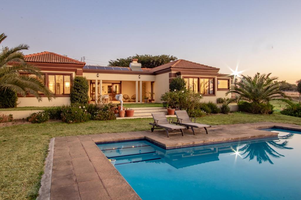 Well fitted and practical kitchen offers ample cupboard space, granite countertops, a Bosch gas hob, and a Defy oven. Includes functional counter space and a central breakfast area. A separate scullery / laundry area provides added convenience.