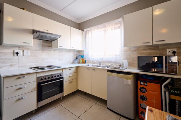 Gourmet Kitchen - The kitchen is the ultimate delight, equipped with sleek cabinetry, an electric stove top and hob, space for 2 appliances and ample storage space. The kitchen is bathed in natural sun light with modern finishes.