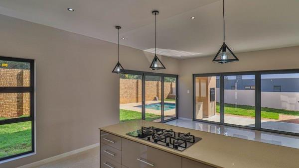 Brand new home directly from the developer in Blue Hills Estate opposite Blue Hills Shopping Centre with easesy access amenities and main roads. The magnificent home with high end finishes boasts a double volume entrance flowing onto a reception leading onto the family room, dining room, modern kitchen with caeser stone tops and high gloss cupboards, scullery, guest bathroom and a guest bedroom downstairs. Upstairs lands on a pajama lounge, 2 guest bedrooms which share a full bathroom, main bedroom with a full en suite bathroom and a walk in closet. The covered patio downstairs has a built in braai, flows onto the swimming pool with a spacious yard with automated irrigation system. The ultra - modern home is graced with staff accommodation and a double automated garage. Price includes transfer duty.