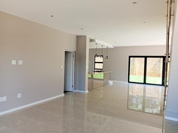 This is a Stunning 4 Bedroom home, Newly built, 3 Bathrooms, all with modern finishes. This Property is freshly Built with 6 plate gas stove. An open space lounge, kitchen , lounge and dining room. Property located perfectly with easy access to the n1, R55. Easy access to public transportation and shopping center literally a minute away. This property has an outside room with its own bathroom. 24 Hr security accompanied by electric fence all around the estate.