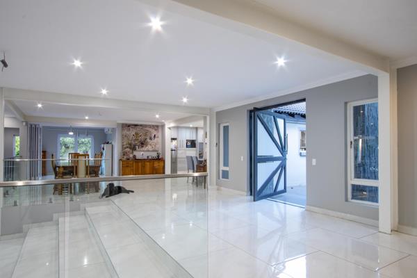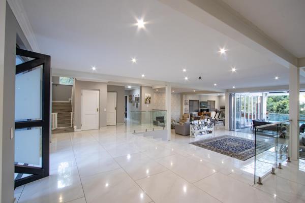 Flowing reception rooms take advantage of the superb outdoor entertainment areas, overlooking the feature rim-flow swimming pool. Relax in the jacuzzi overlooking a beautifully treed indigenous garden.