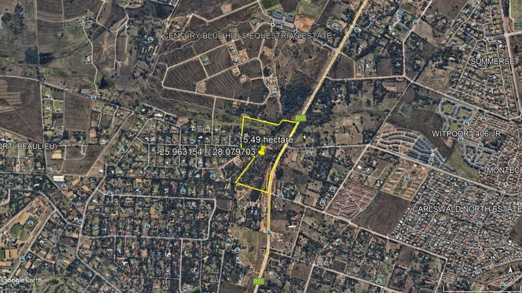 This prime Blue Hills property is situated along the R55 between Centurion and Johannesburg north and bordering the popular Century Blue Hills Equestrian Estate..
