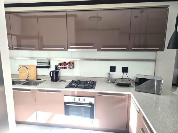 Very modern and stylish open plan Kitchen has a Gas Hob, Ceasar countertops and fitted with Bosch appliances. A separate Laundry / Scullery with fittings for your extra appliances or storeroom.