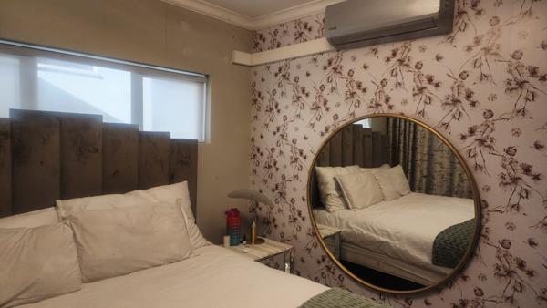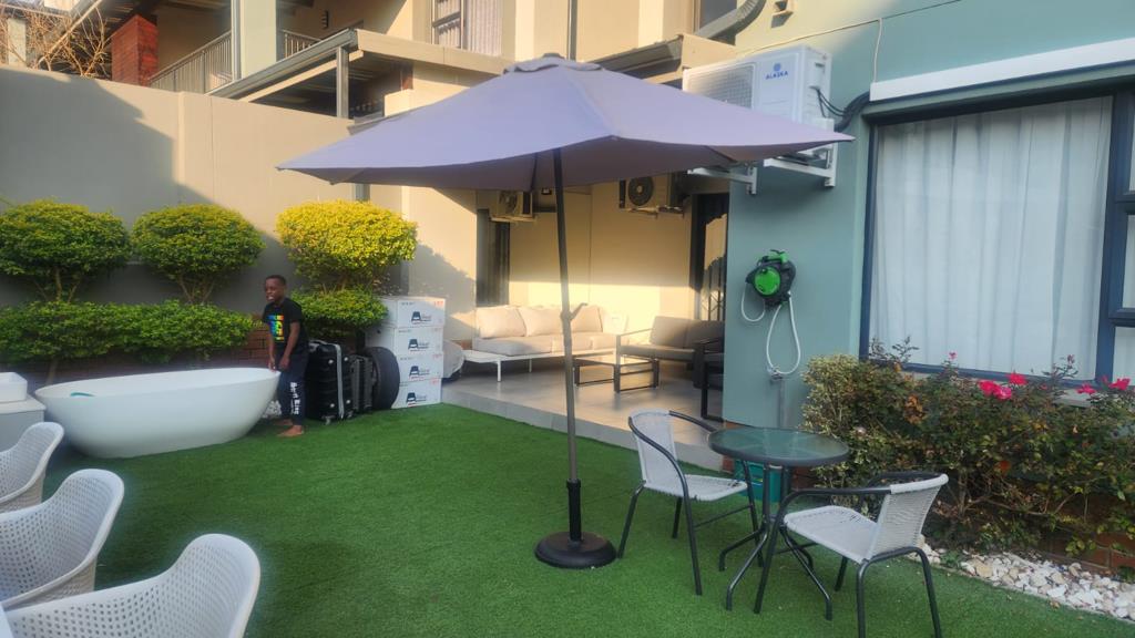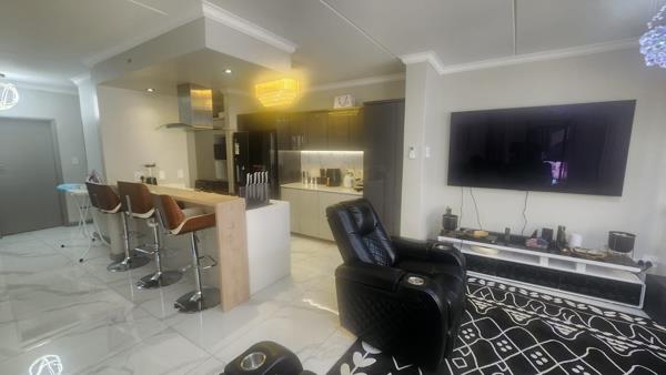 Enjoy spacious open-plan living with a sleek kitchen, scullery nook, and generous lounge and dining area that flow effortlessly onto a covered patio and private gardencomplete with built-in braai for effortless entertaining. The apartment boasts automated curtains, air conditioning in all rooms, TV connections, and smart bathroom features, complemented by new tiling and lighting throughout.