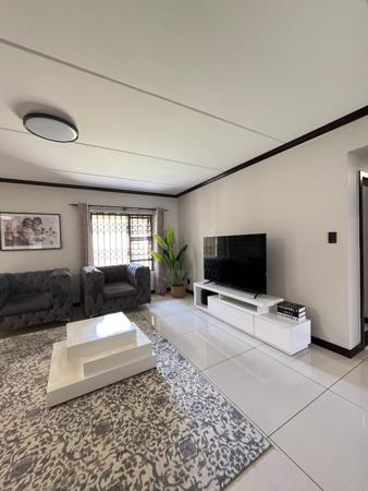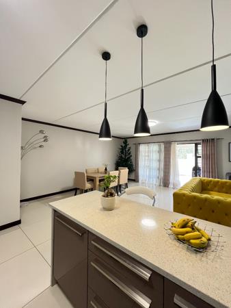 Elegant Living Spaces: The open-plan lounge flows seamlessly onto a covered patio with a built-in braai and kitchenette, complete with a sink. The patio opens to a spacious private garden, perfect for hosting or adding outdoor entertainment features.