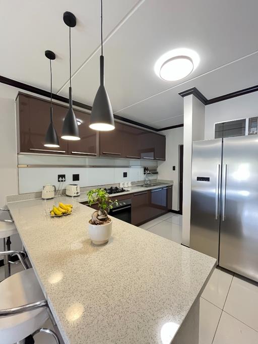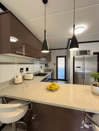 Gourmet Kitchen: The heart of the home boasts Caesarstone countertops, ample cupboard space, and a gas stoveideal for uninterrupted cooking even during power outages. The separate scullery includes space for a wet appliance, cupboards space, ensuring a clutter-free environment.